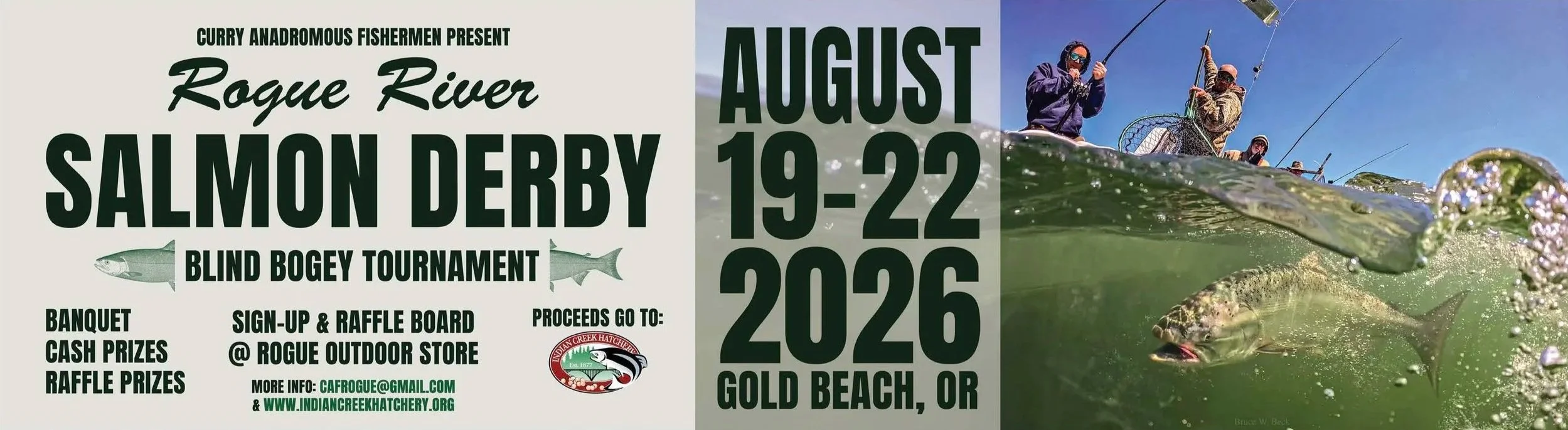 Hosted by Curry Anadromous Fishermen, this annual community event raises funds for Indian Creek Hatchery and supports the health of Fall Chinook salmon in the Rogue River. Anglers of all experience levels are welcome.